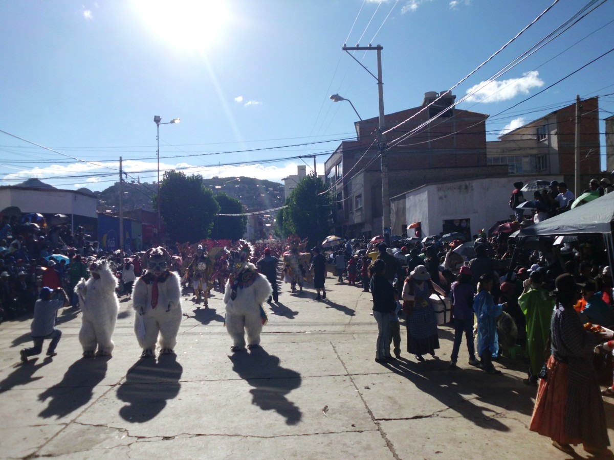 Es ist Carnaval: Gehe ich nach Oruro oder nach Santa Cruz? Weltkulturerbe oder Carnaval wie in Brasilien mit Samba und allem drum und dran? Ich entschied mich fuer Oruro, das bedeutend hoeher liegt und angeblich manchmal kaelter als La Paz sein soll.